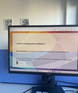 Pierwszy webinar poświęcony był zarządzaniu konfliktami w miejscu pracy. Konflikty są naturalnym elementem współpracy, a sposób, w jaki sobie z nimi radzimy, ma bezpośredni wpływ na atmosferę w zespole, efektywność działań i poziom zaangażowania. Podczas spotkania uczestnicy poznali różne rodzaje konfliktów, uczyli się rozpoznawać ich źródła oraz praktyczne strategie skutecznego rozwiązywania sporów. Omówiona została także rola komunikacji i negocjacji w budowaniu kultury opartej na zaufaniu i wzajemnym szacunku.