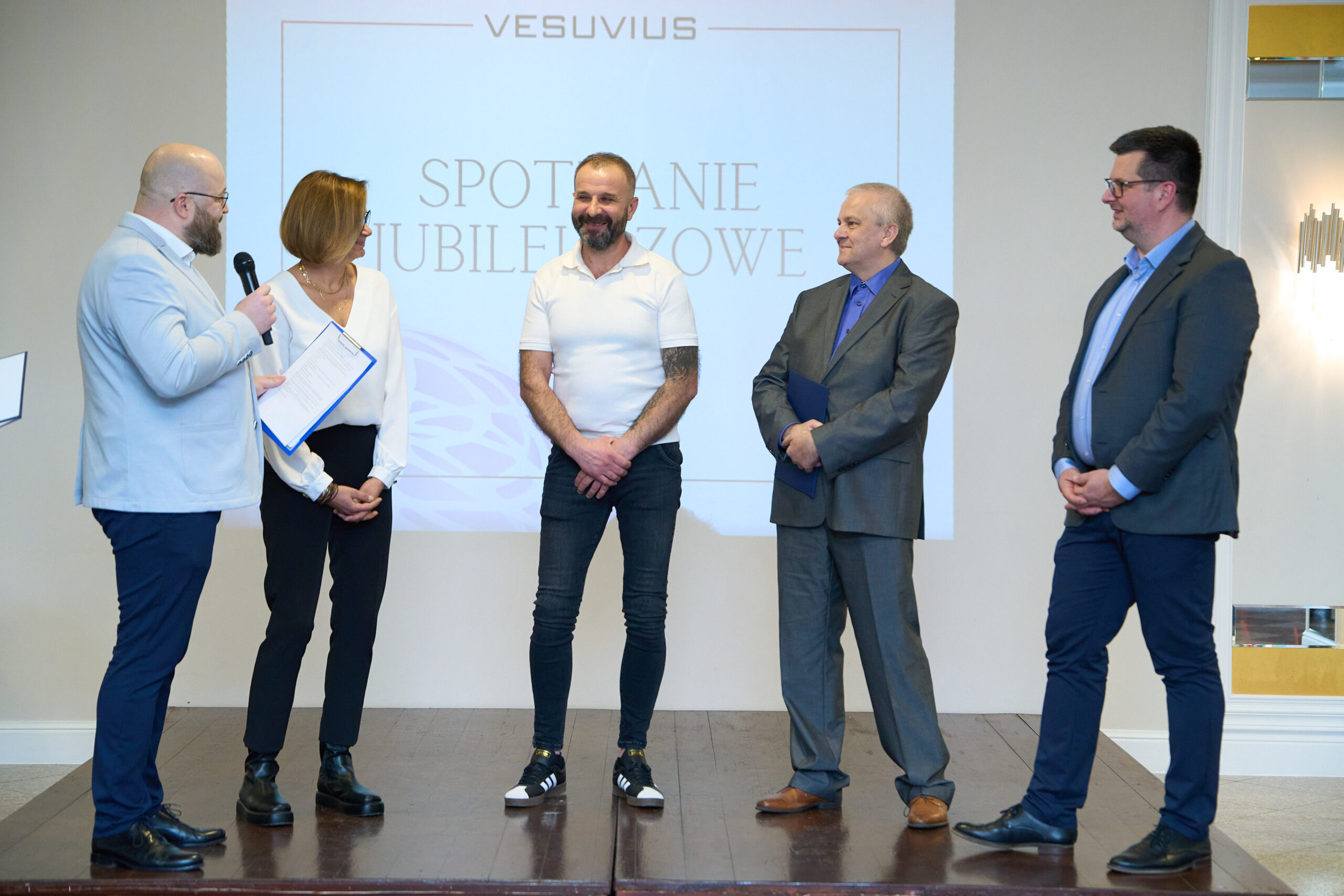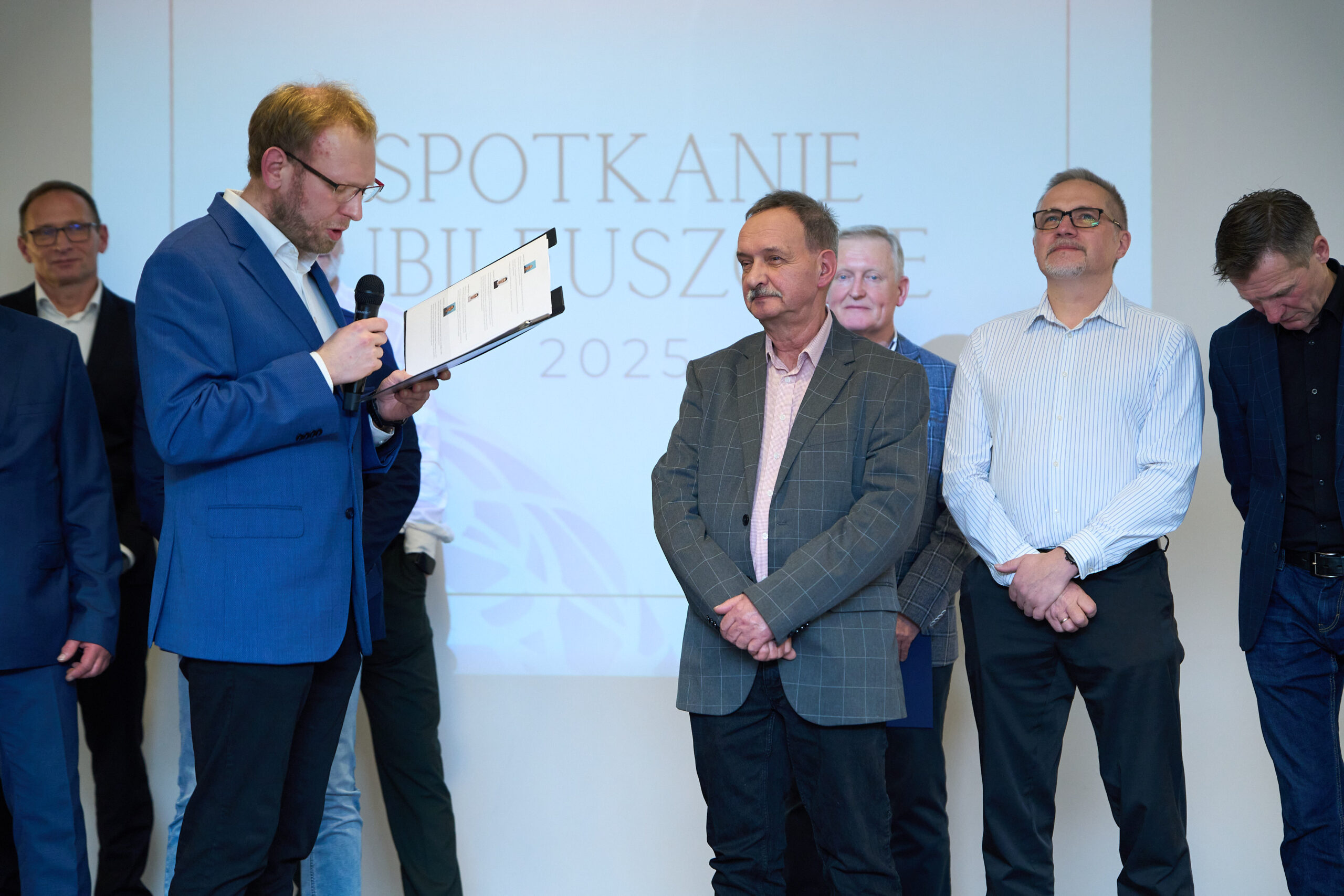 25 years of service were celebrated by Grzegorz Pobożniak and Tomasz Kapusta, while the group of employees marking 20 years included Maciej Brodłowicz, Michał Grabek, Mariusz Gruca, Krzysztof Kapel, and Jarosław Zaręba.